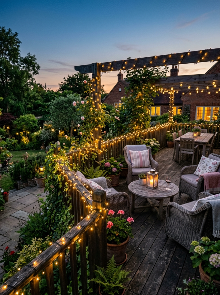 8. Defining Outdoor Zones with Fairy Lights Decor
