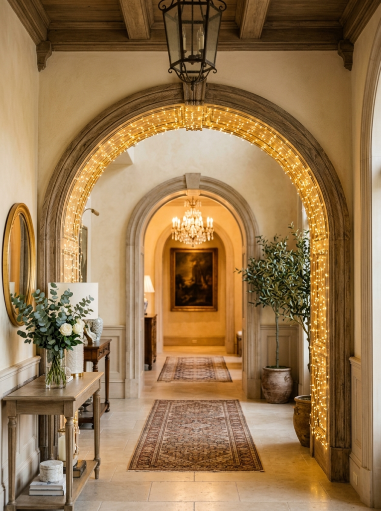 Use fairy lights to accentuate the natural lines and structures of your home. Outline windows, doorways, or archways to draw attention to these architectural elements and add a soft, inviting frame.