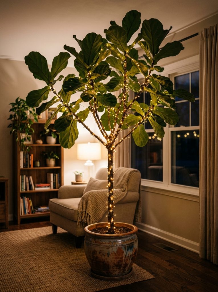 Combine the organic beauty of plants with the sparkle of fairy lights for a truly enchanting display. Wrap strands around the branches of potted trees, large houseplants, or even artificial foliage. The lights will add a magical twinkle, making your greenery come alive after dark.