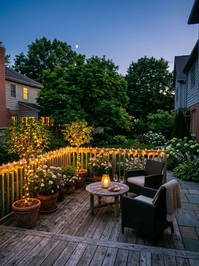 Even a small balcony can feel like an enchanting escape with thoughtful outdoor fairy lights decor.